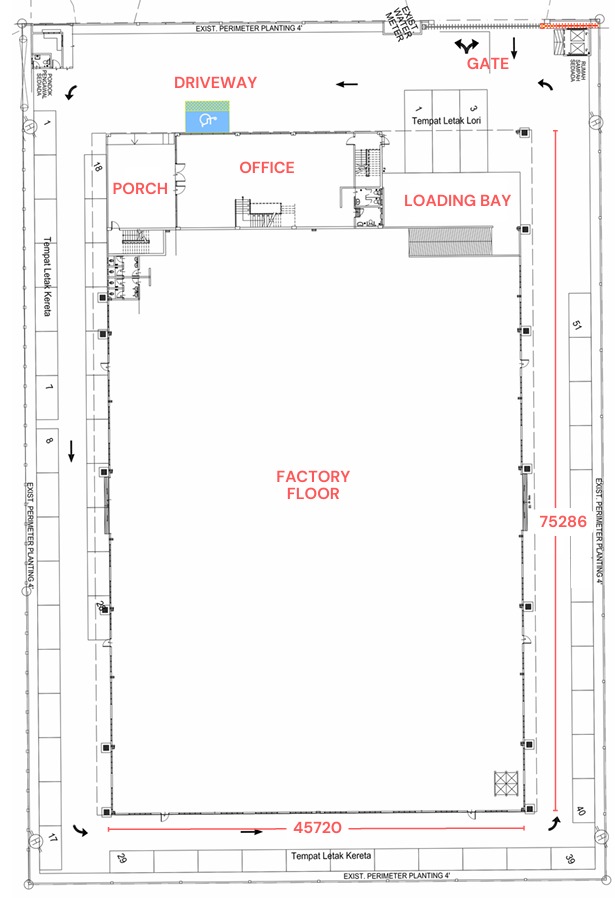 Built Up Area: 45,000sqft (35,000 sqft factory space, 10,000 office space)